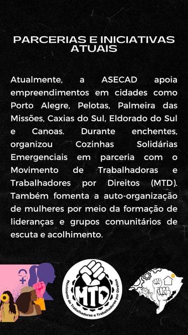 Somos um Ponto Popular de Trabalho (União Criativa), promovendo produção coletiva, economia solidária e desenvolvimento local. Atuamos junto à P. Marlene Lima, fortalecendo iniciativas que transformam realidades por meio do trabalho e da criatividade, junto do Movimento de Trabalhadoras e Trabalhadores por Direitos.